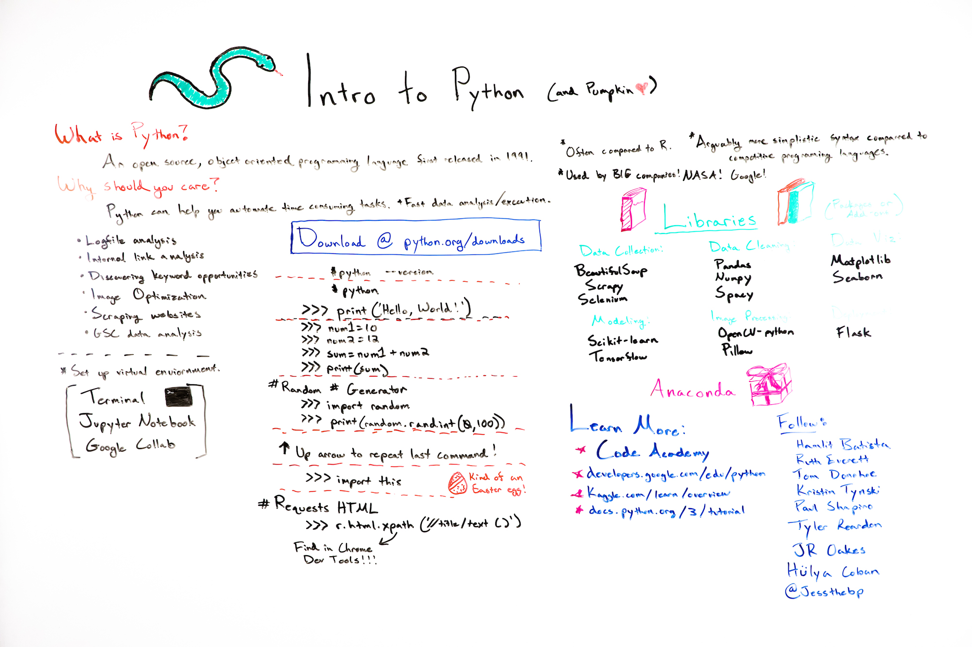 Python is a programming language that can help you uncover incredible SEO insights and save you time by automating time-consuming tasks. But for those who haven’t explored this side of search, it can be intimidating. In this episode of Whiteboard Friday, Britney Muller and a true python expert named Pumpkin offer an intro into a helpful tool that’s worth your time to learn.